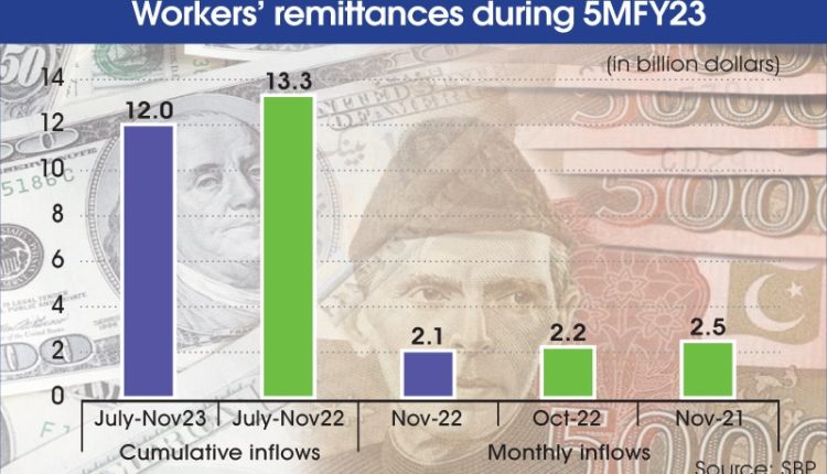 By Shahid Iqbal Published in DAWN on December 15, 2022 KARACHI: Remittances sent by overseas Pakistanis declined by 14 per cent in November this year. The inflows fell by 9.6 per cent during the first five months of the current fiscal year (FY23). The latest data released by the State[…]